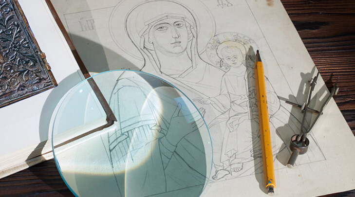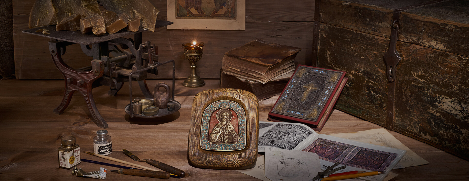 До 2017 года основным материалом создания икон в нашей мастерской была медь. Процесс создания занимает много времени, имеет множество этапов обработки, что существенно влияет на стоимость художественного изделия. Мы обратились к древней традиции создания икон из воска, удивительного природного продукта с характерным медовым ароматом. Введение цвета и металлизированное покрытие - отличительная черта наших работ.