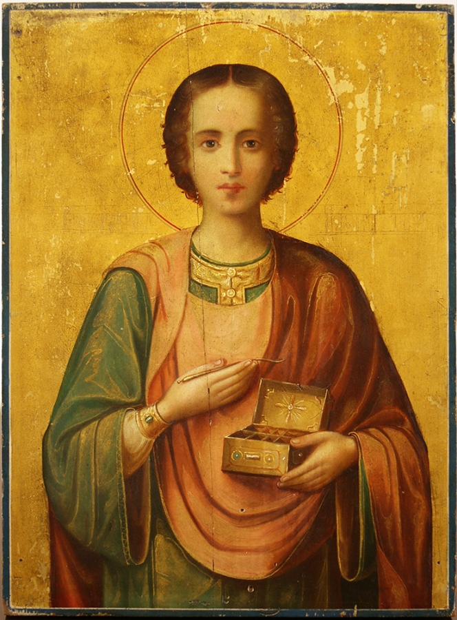 Отцом будущего святого был ярый язычник, который назвал его Пантолеоном ("лев во всём"). После смерти матери-христианки, юноша был отдан в языческую школу, где впоследствии обучился врачебному искусству. Волей Божией, дорога к месту учебы проходила через убежище трёх пресвитеров, скрывающихся от гонений. От них молодой человек впервые услышал о Христе и с тех пор твердо решил быть с Господом. Он был крещён с именем Пантелеймон, которое переводится как "всемилостивый". Милость его действительно была широка. Он никому не отказывал в помощи, по его молитвам происходили чудесные исцеления людей, а свидетели этих чудес пополняли ряды воинов Христовых. И даже родной отец-язычник принял крещение. Сам же юноша много претерпел за свою веру, перенеся истязания, о которых даже читать страшно. Приняв в 30 лет мученическую кончину, святой Пантелеймон стал перед Престолом Божиим и ежедневно по молитвам перед его образом, совершаются чудеса физического и духовного исцеления людей. Также, Церковь почитает его как покровителя воинов-защитников своего Отечества.