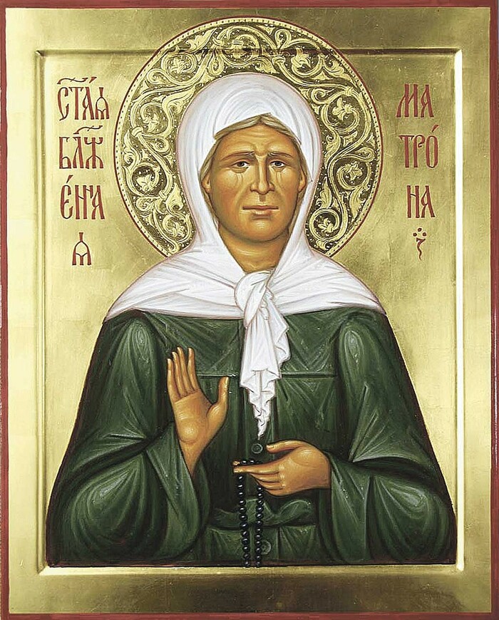 Избранная Духом Божиим, ещё будучи во чреве она, приснилась своей матери в образе белоснежной птицы с закрытыми глазами. Родилась Матрона слепой, но уже с самого раннего детства обладала духовным зрением, позволявшим "видеть" ей за тысячи километров и предсказывать будущее с невероятной точностью. Люди мгновенно поняли, что это не обычный ребенок и с тех пор нескончаемым потоком шли к Матроне за помощью. В 17 лет у девушки отнялись ноги и до самой кончины Матрона была обездвижена. Физическая слабость нисколько не убавила её любви к людям. Весь день она принимала страждущих, а ночью горячо молилась. Матронушка, как ее ласково величают люди, молится пред Престолом Божиим о всех к ней приходящих: в семейных неурядицах, в рабочих конфликтах, в болезнях, о бездетных... Во множестве приходят к ней люди и получают утешение, веру и надежду.